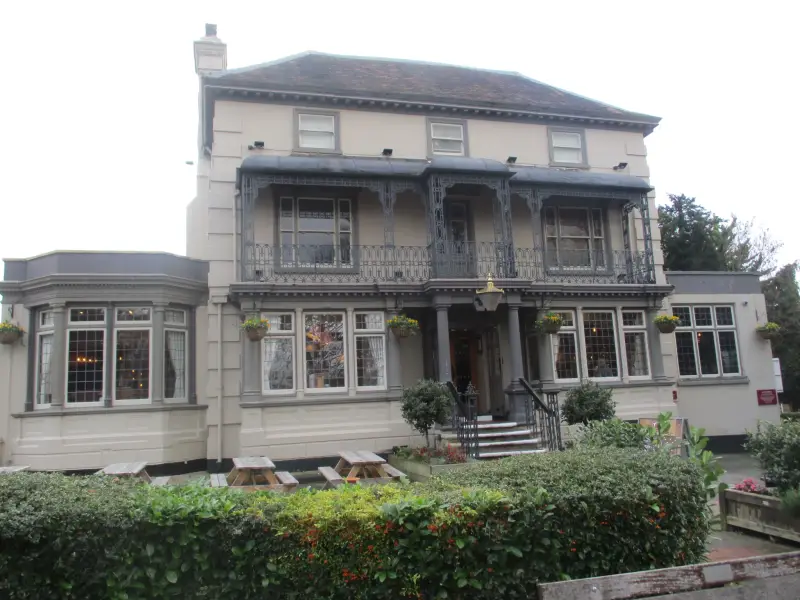 This is a small local corner pub sitting next to Nightingale Green in the back streets of Wanstead. There may have been an older drinking establishment there but the present building dates from the mid-19th century. It is listed by Historic England as Grade 2. It is currently known as Nightingale on the Green.